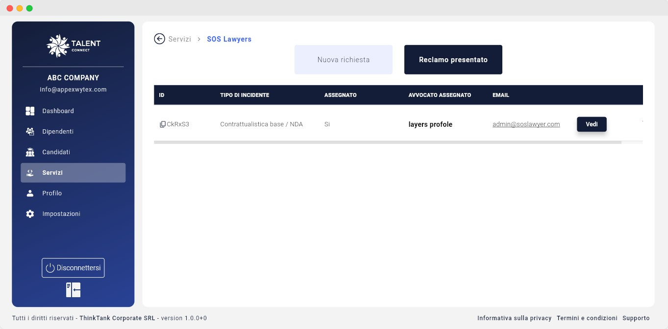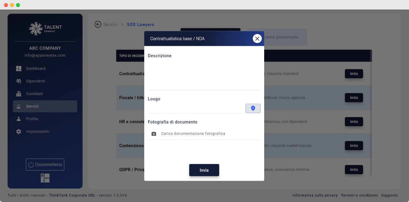 Con Talent Connect + SOS Lawyer, la tua azienda può presentare reclami legali e i nostri avvocati verificati si occuperanno del resto.